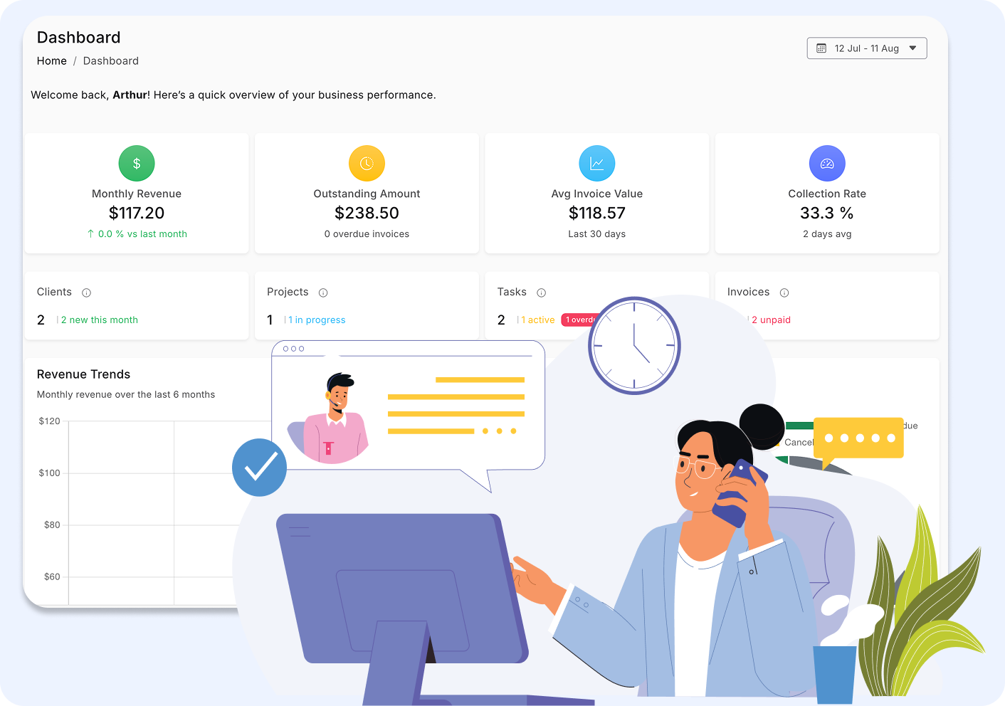 Rimahs tracks projects, payments, and clients. So you can focus on what really matters: delivering great work and getting paid for it.